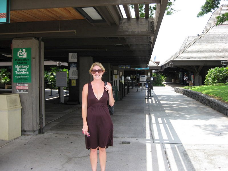 Stalk It: The Kona Airport is located right on Highway 11, off Kaiminani Drive. Whitney ran into problems at the United Security Checkpoint, located behind me in the above photograph.